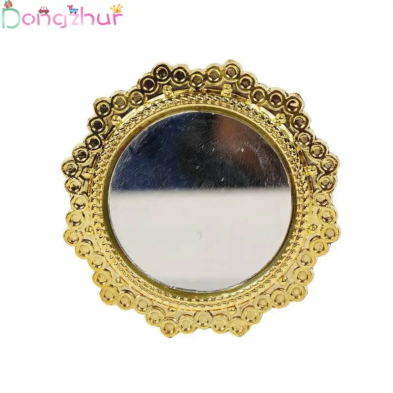 1:12 Dollhouse Miniature Vintage Round Mirror With Gold Frame Diy Doll House Kit Doll House Furniture Decor Accessories