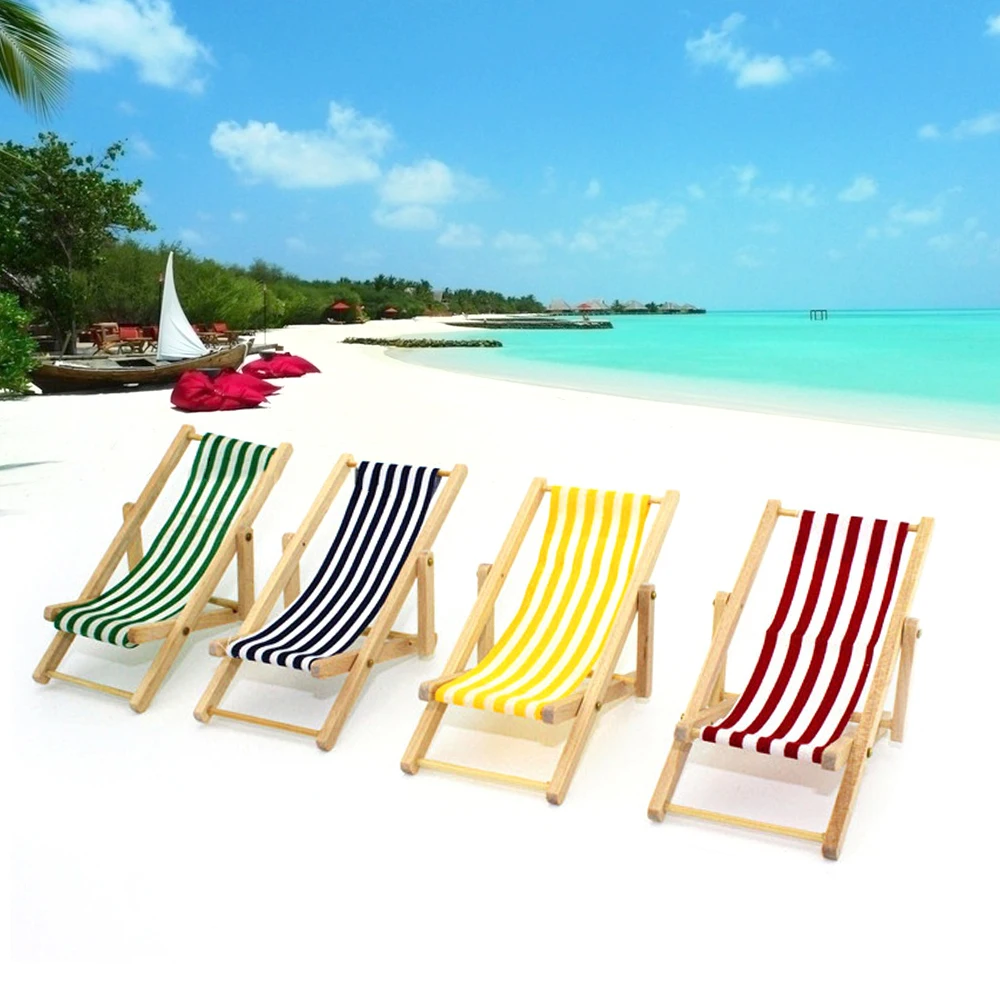 Gallery of 1:12 Mini Stripe Foldable Wood Beach Chair Recliner Sunbathing Chair Chaise Lounge Chair Dollhouse Furniture for Barbie Toy