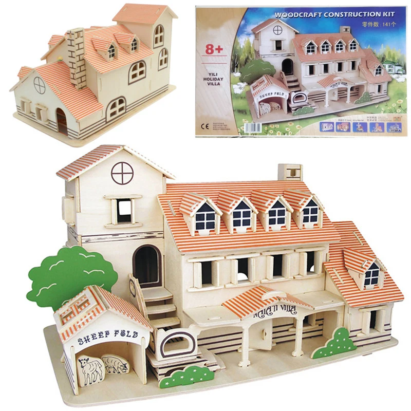 Great Price for 141Pcs/Set Blocks Woodcraft Construction Dollhouse Kit 321x195x190mm 3D Wooden Doll Houses Villa House Model Puzzle Children Toy Only US $12.43 !