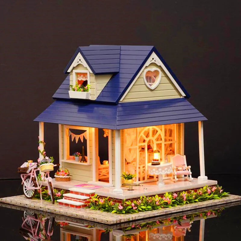 New Deals of 3D Wooden Miniature Dollhouse Music Toy Kit Simulation Bike Furniture Doll House Model Children DIY Assemble Toys With LED Light Only US $27.65 !