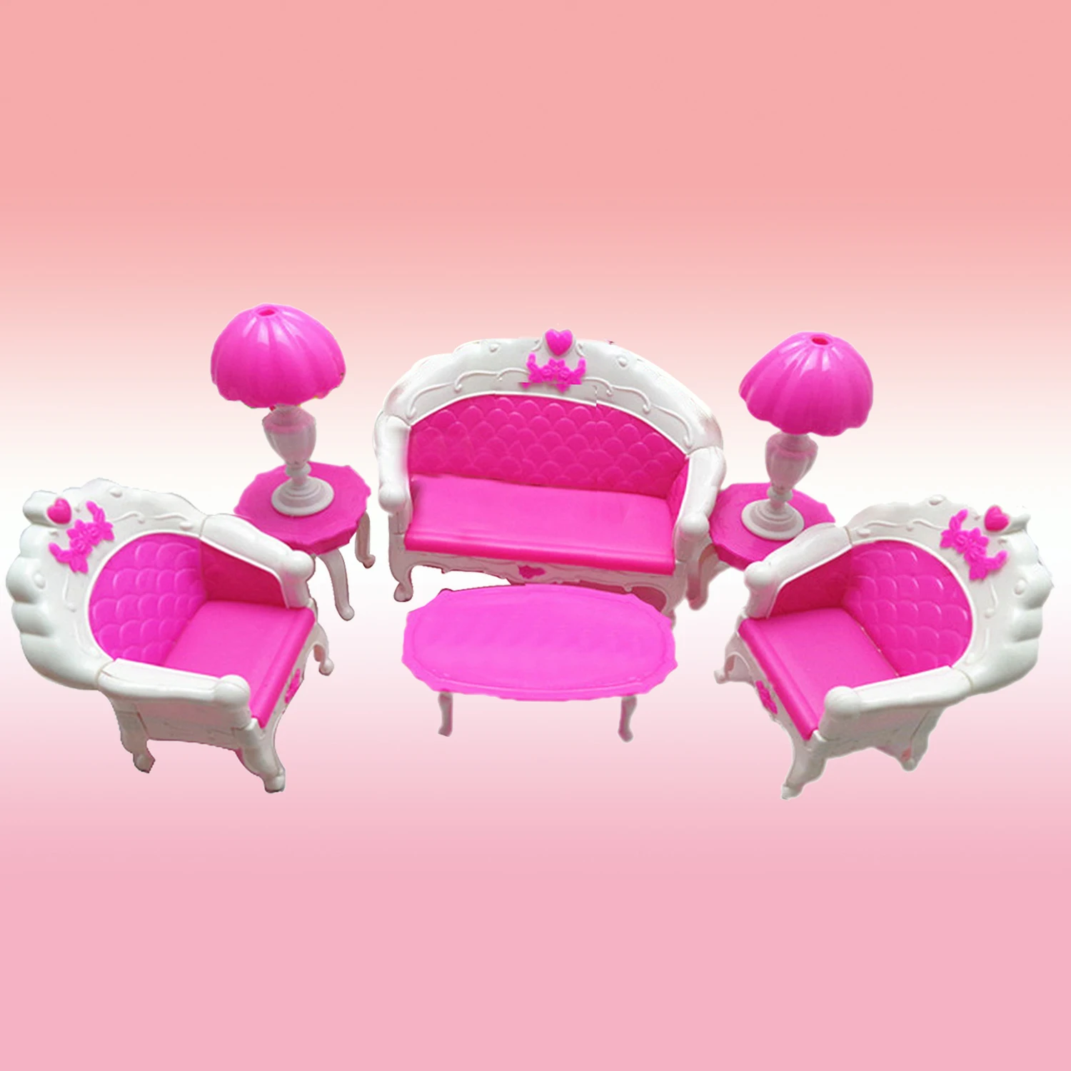 Images of 6PCS Mini Dollhouse Plastic Sofa Chair Couch Desk Lamp Miniature Living Room Furniture Accessories for Barbies Doll Toys