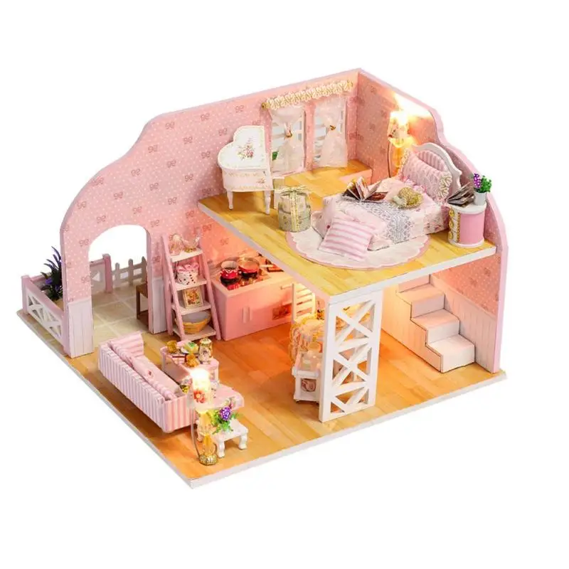 Assembly Building Model Toy Doll House Wooden Miniature DIY Dollhouse Kit Model Handmade Wooden Miniature Doll House Furniture
