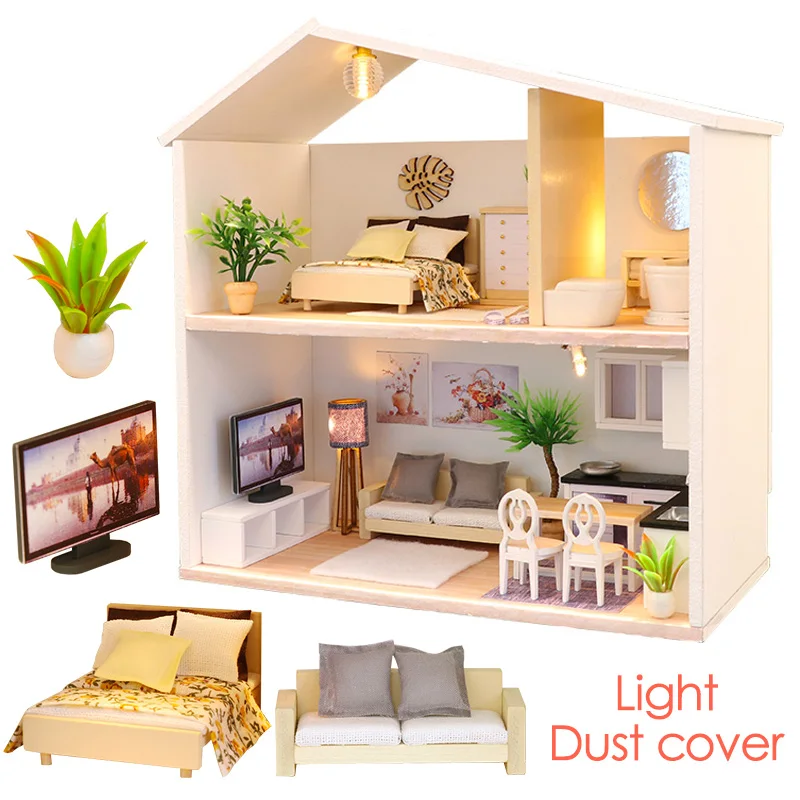 New Deals of DIY Doll House Light Time Wooden Handcraft Miniatures Furniture Dollhouse Kits Dollhouse Puzzle Children Birthday Gift Girls Toy Only US $33.23 !
