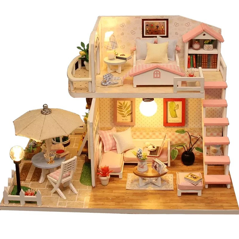 supplementary opinion for DIY Wooden Dollhouse Doll House Pink Loft Handmade Miniature Dollhouses Kit Music Box Dust Cover Toys For Girls Xmas Gifts :