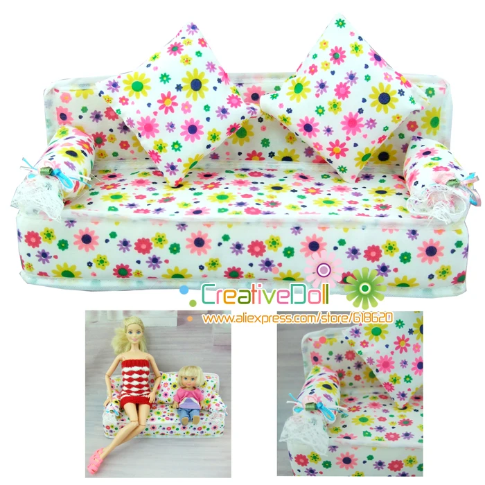 Gallery of Funny toys for baby girls play house toys Mini Dollhouse Furniture Flower soft sofa with cushions doll house for barbie doll