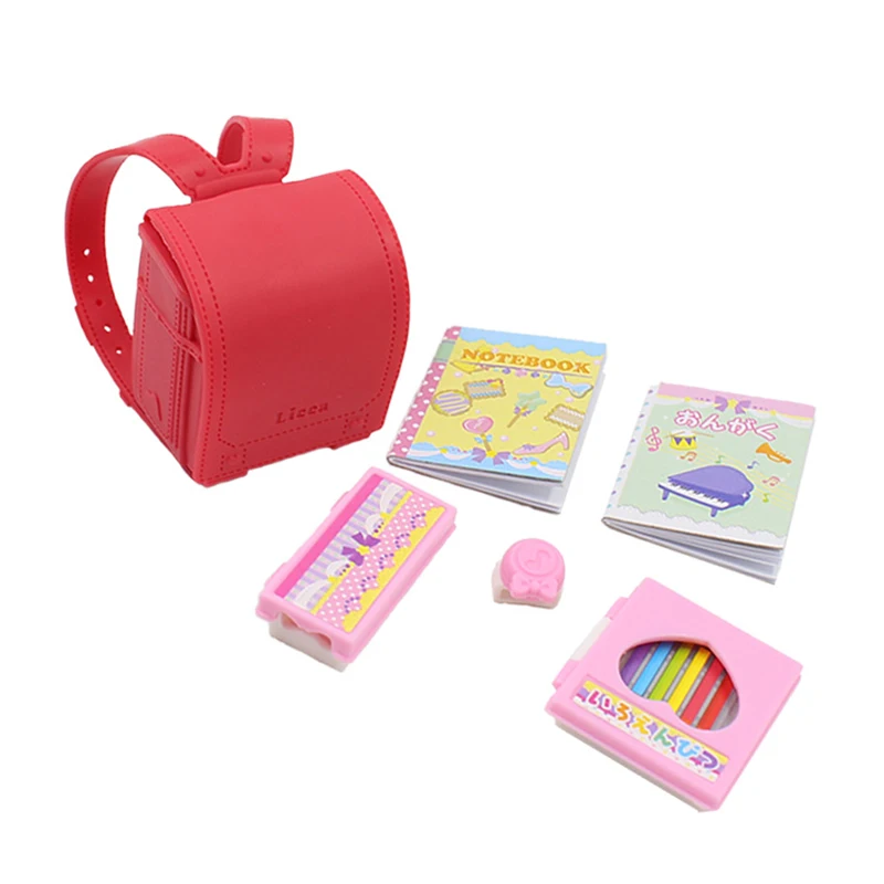 (Jimusuhutu) Original 6Pcs School Satchel Doll Accessories for Blyth Barbie Dollhouse Best Gift Toy for Girl Doll Furniture Book