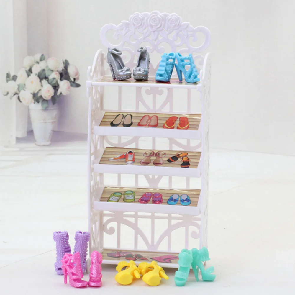 New Price of Kids Mini Doll Shoes Rack DIY White Hollow out High Heels Shoes Cabinet Dollhouse Furniture Accessories for Barbie Dolls Toy Only US $2.35 !