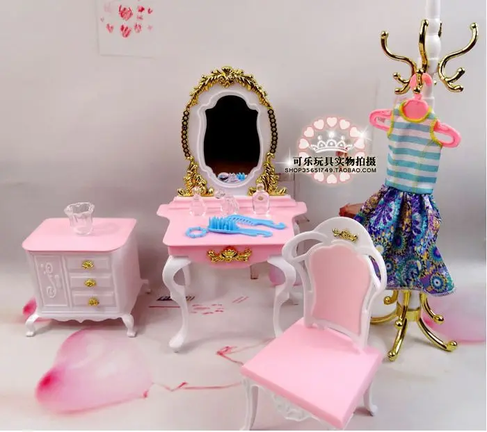 New Price of New Princess Dresser Chair Table Set / Dollhouse Furniture Puzzle Baby Toy Bedroom Accessories Decoration for Barbie Kurhn Doll Only US $20.61 !