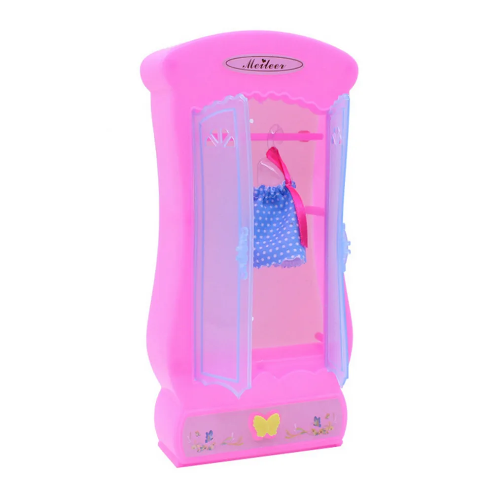 Plastic Mini Wardrobe Closet Dollhouse Cabinet Bedroom Furniture Accessories for Barbie Doll House Toys