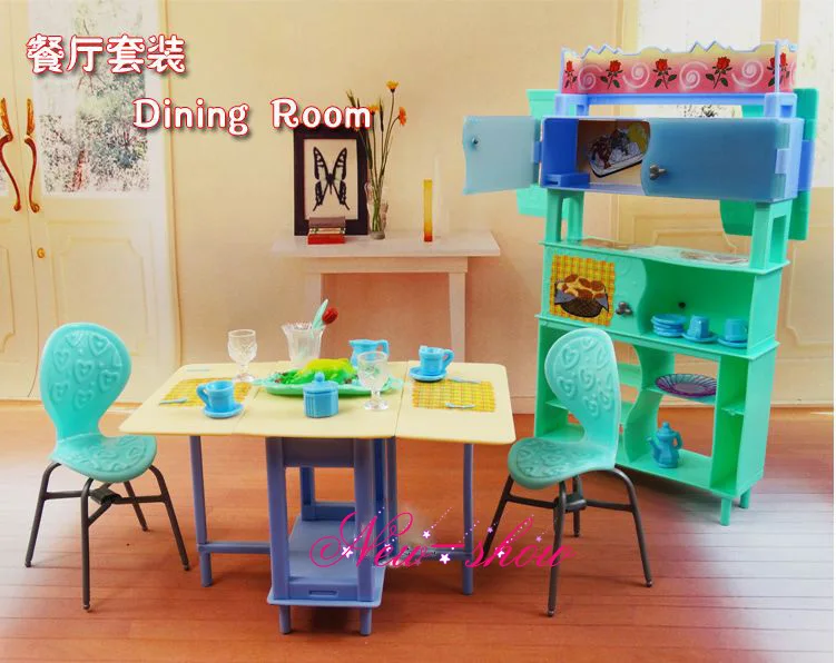 Special Offer of Dining Table Showcase Chair Set / Pretend Play dollhouse dining room furniture Accessories decoration for Barbie kurhn doll Toy Only US $26.21 !