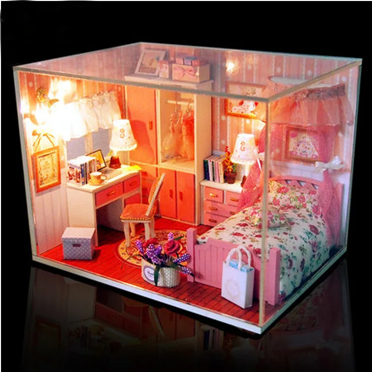 new information for Diy dollhouse kit 3D Casa De Boneca Miniature Doll House Model Building Kits Wooden Furniture Toys Birthday Gifts--pink dream :